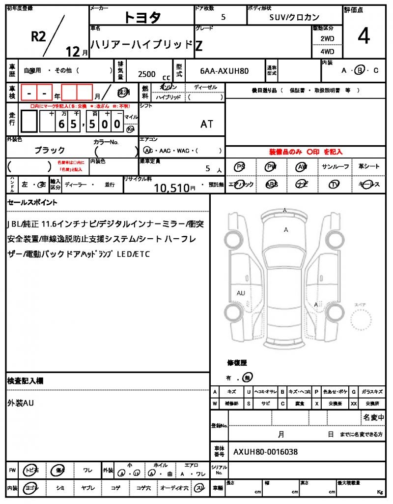 | VIN/Serial No. | AXUH80-0016038 |