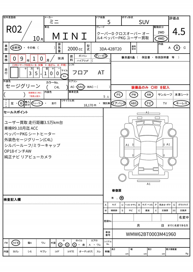 VIN/Serial No. WMW62BT0003M41960