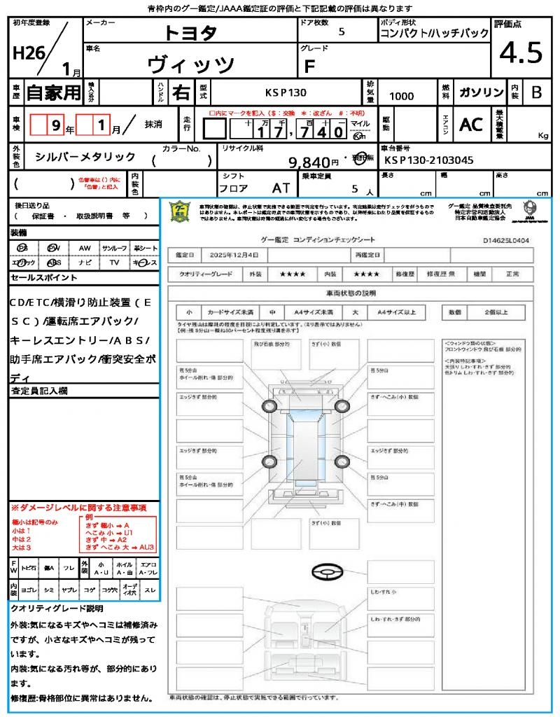 | VIN/Serial No. | KSP130-2103045 |