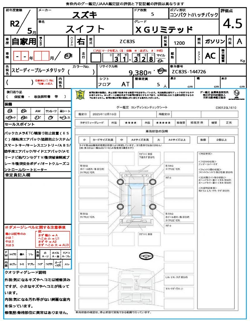 | VIN/Serial No. | ZC83S-144726 |