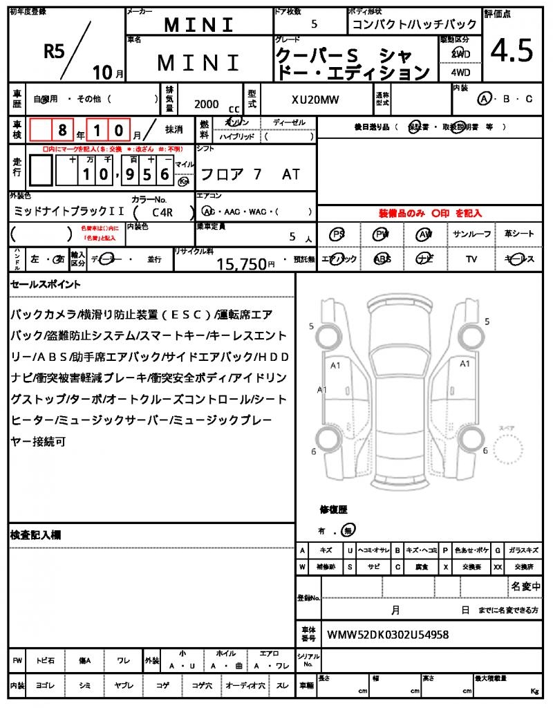 | VIN/Serial No. | WMW52DK0302U54958 |