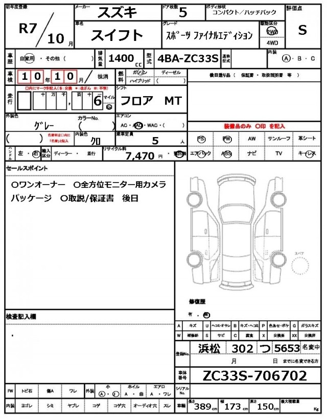 | VIN/Serial No. | ZC33S-706702 |
