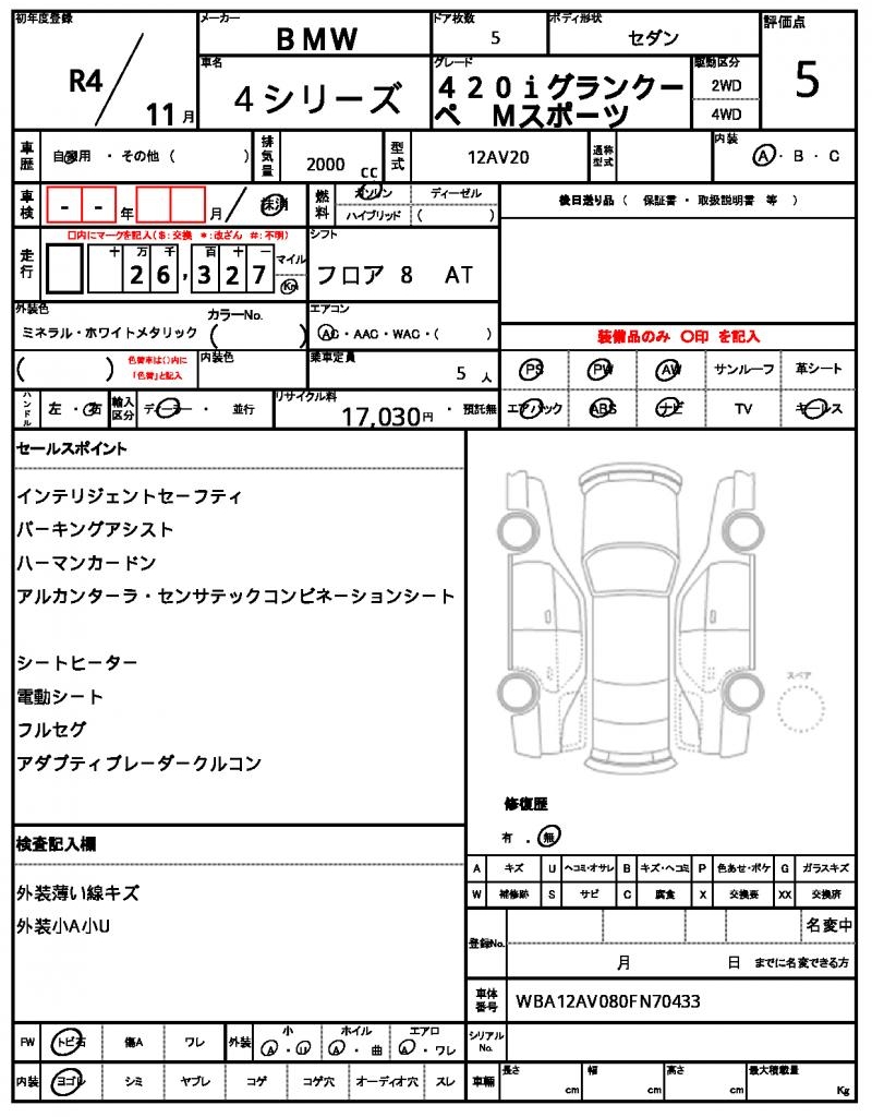 | VIN/Serial No. | WBA12AV080FN70433 |
