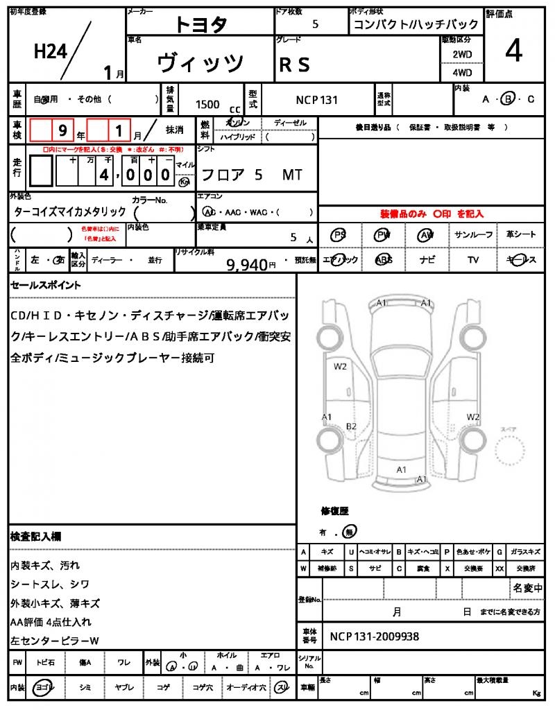| VIN/Serial No. | NCP131-2009938 |