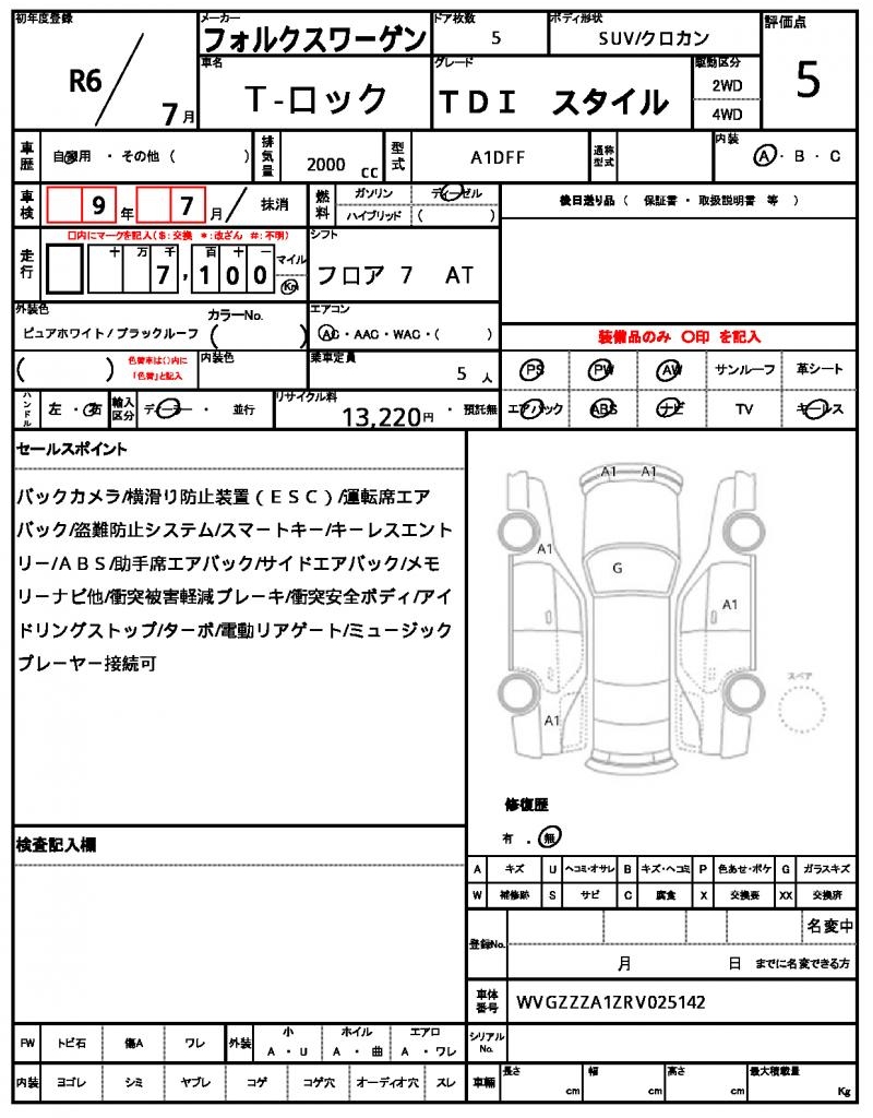 | VIN/Serial No. | WVGZZZA1ZRV025142 |