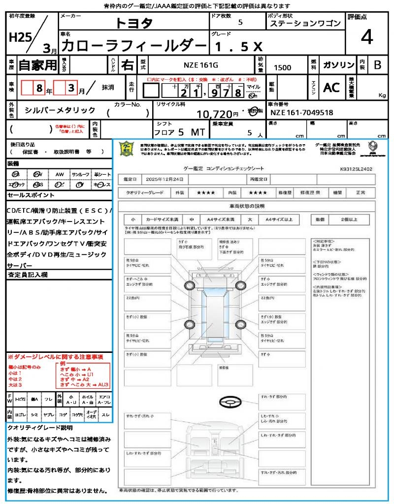 | VIN/Serial No. | NZE161-7049518 |