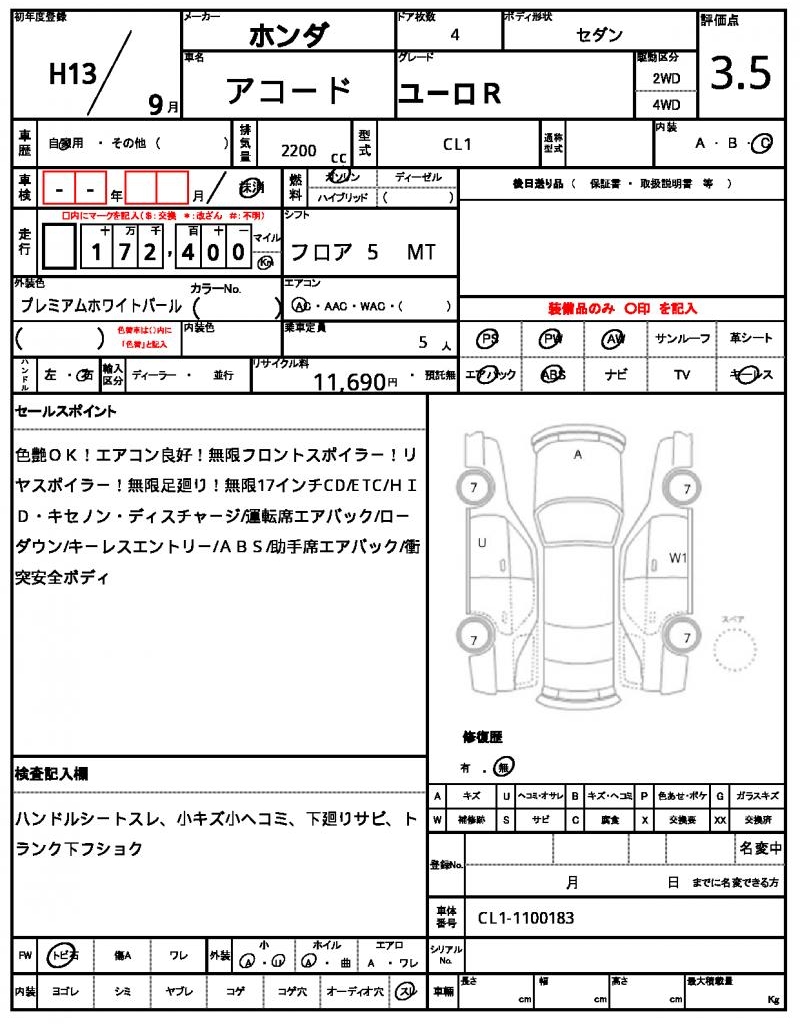 | Odometer | 172400km |