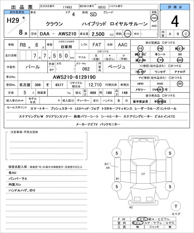| VIN/Serial No. | AWS210-6129190 |