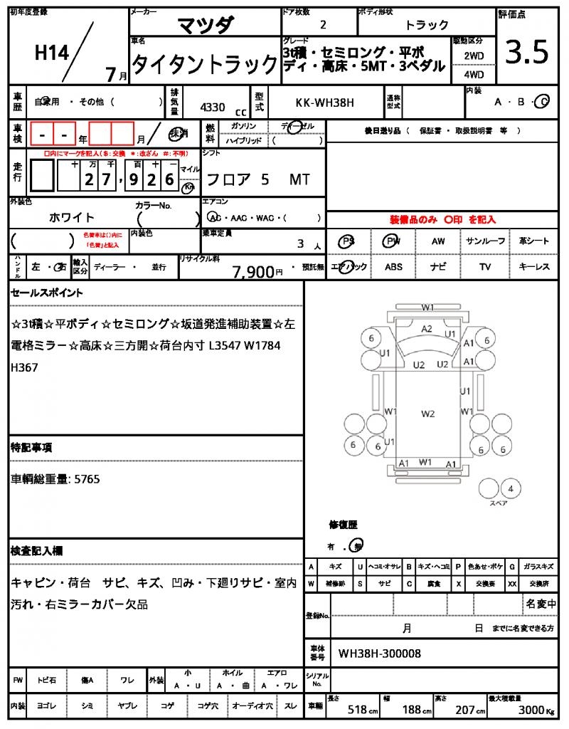 | VIN/Serial No. | WH38H-300008 |