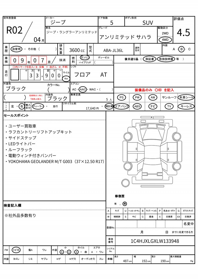 VIN/Serial No. 1C4HJXLGXLW133948