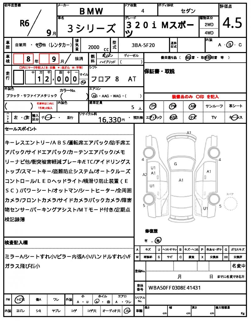 | VIN/Serial No. | WBA50FF0308E41431 |