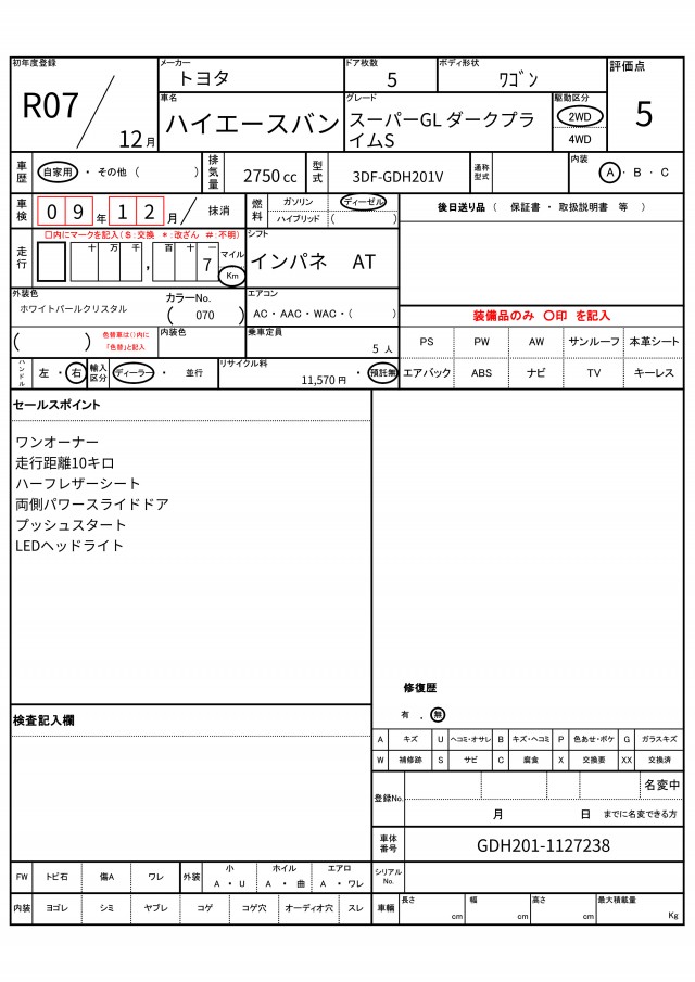| VIN/Serial No. | GDH201-1127238 |