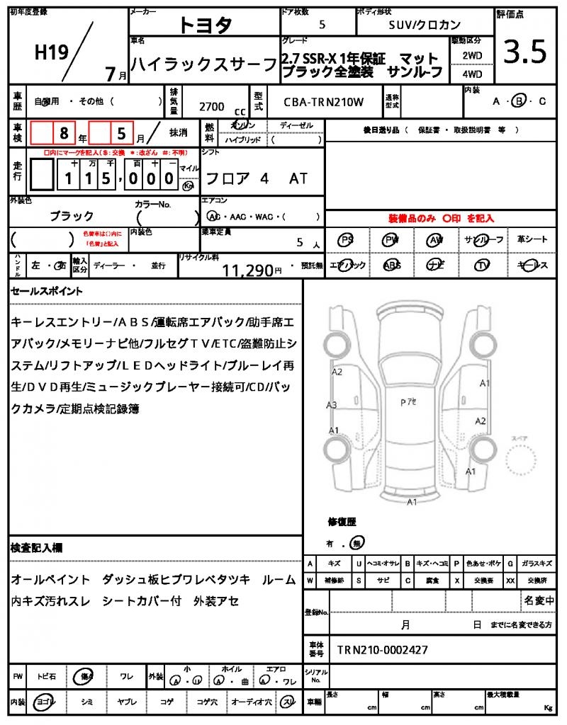 | VIN/Serial No. | TRN210-0002427 |