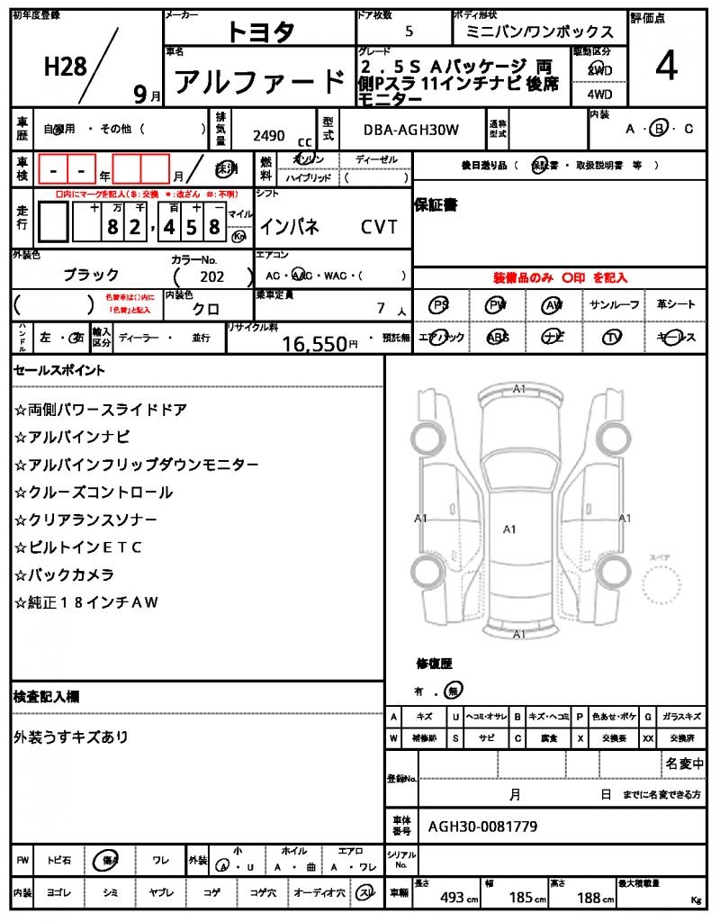 | VIN/Serial No. | AGH30-0081779 |