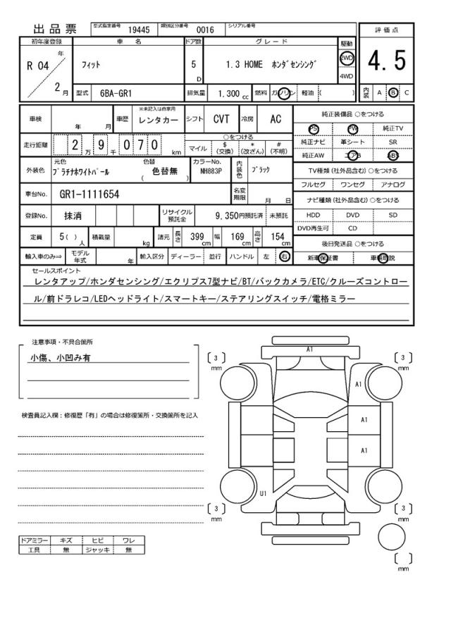 | VIN/Serial No. | GR1-1111654 |