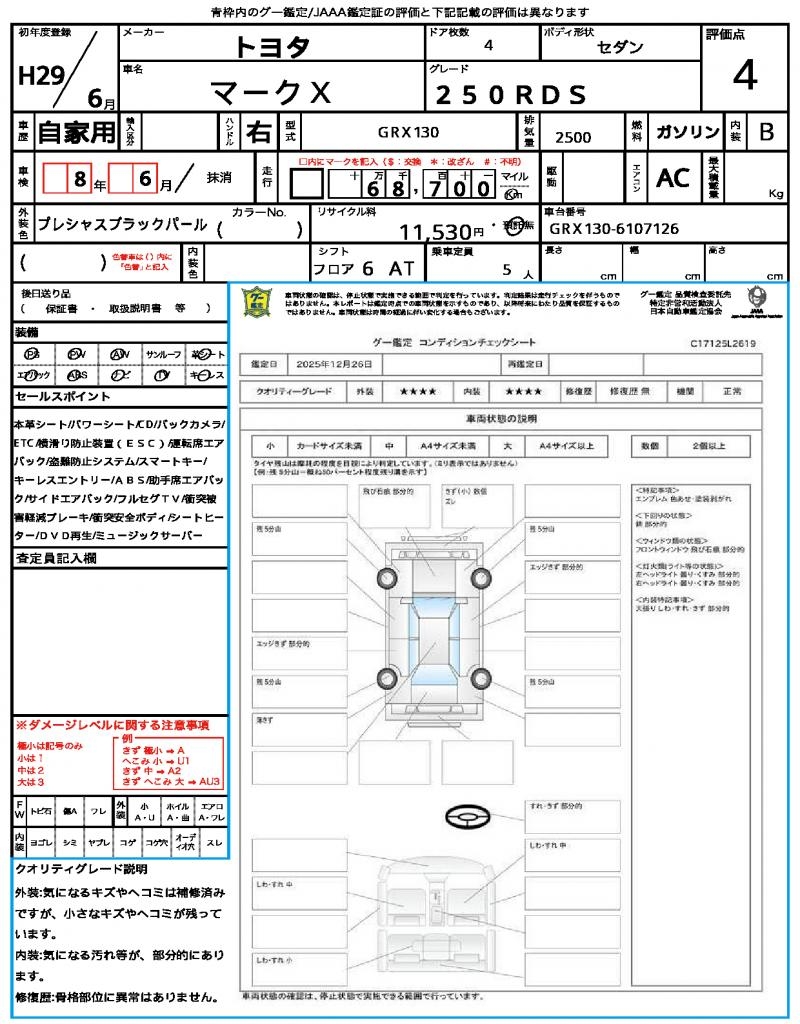 | VIN/Serial No. | GRX130-6107126 |