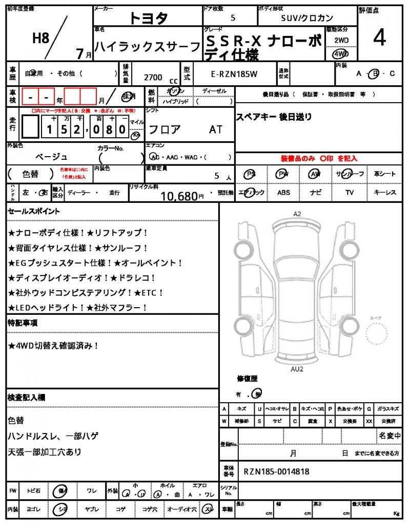 | VIN/Serial No. | RZN185-0014818 |
