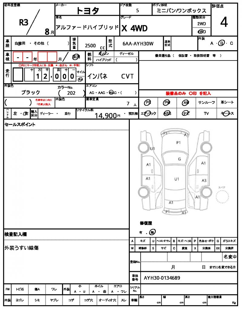 | VIN/Serial No. | AYH30-0134689 |