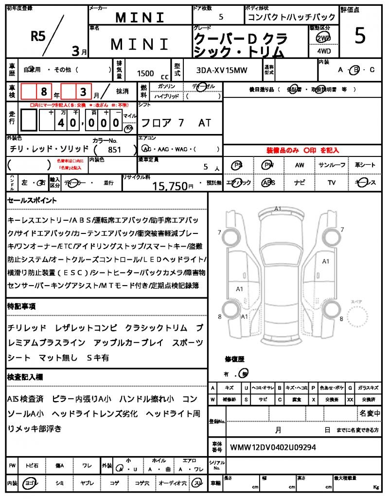 VIN/Serial No. WMW12DV0402U09294