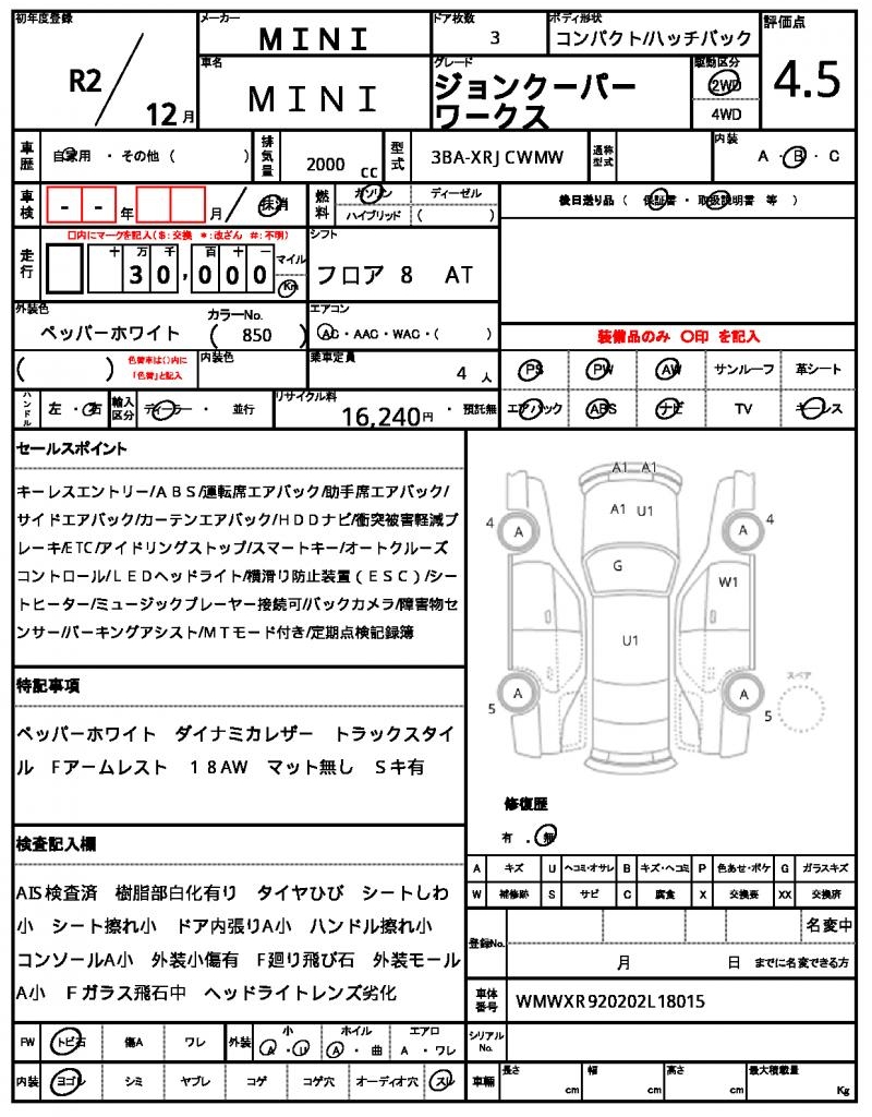 | VIN/Serial No. | WMWXR920202L18015 |