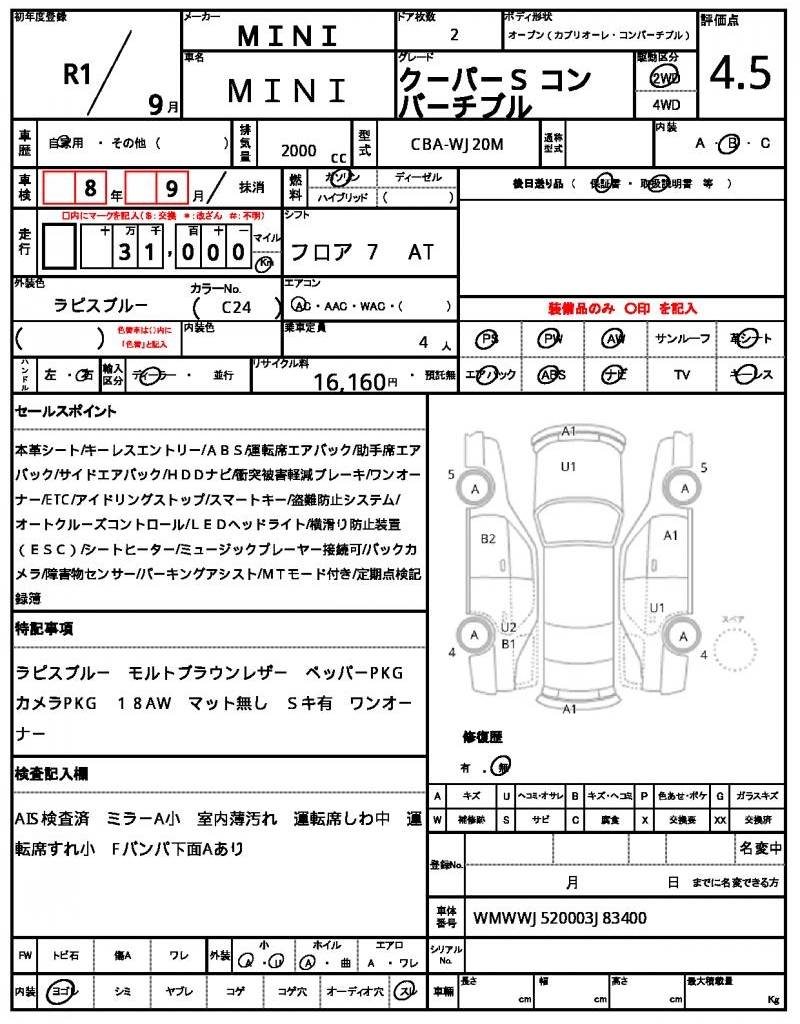 | VIN/Serial No. | WMWWJ520003J83400 |