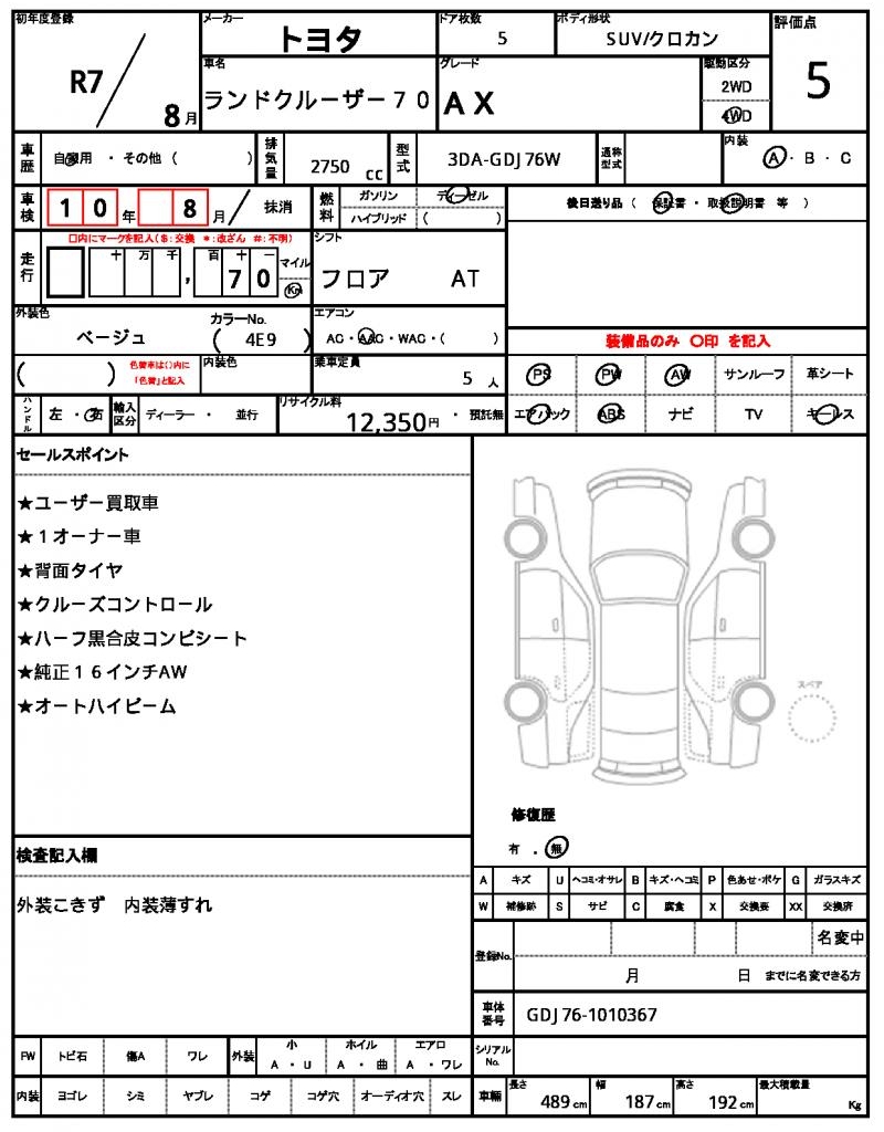 VIN/Serial No. GDJ76-1010367