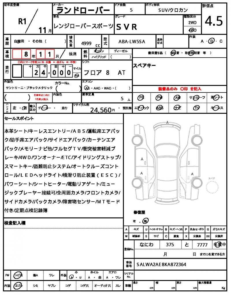 | VIN/Serial No. | SALWA2AE8KA872364 |