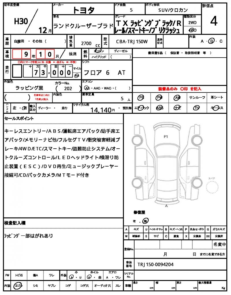 | VIN/Serial No. | TRJ150-0094204 |