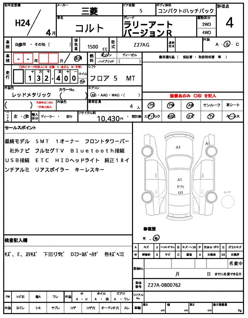 | VIN/Serial No. | Z27A-0800762 |