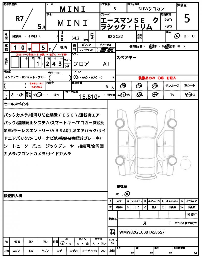 | VIN/Serial No. | WMW82GC000TA58657 |