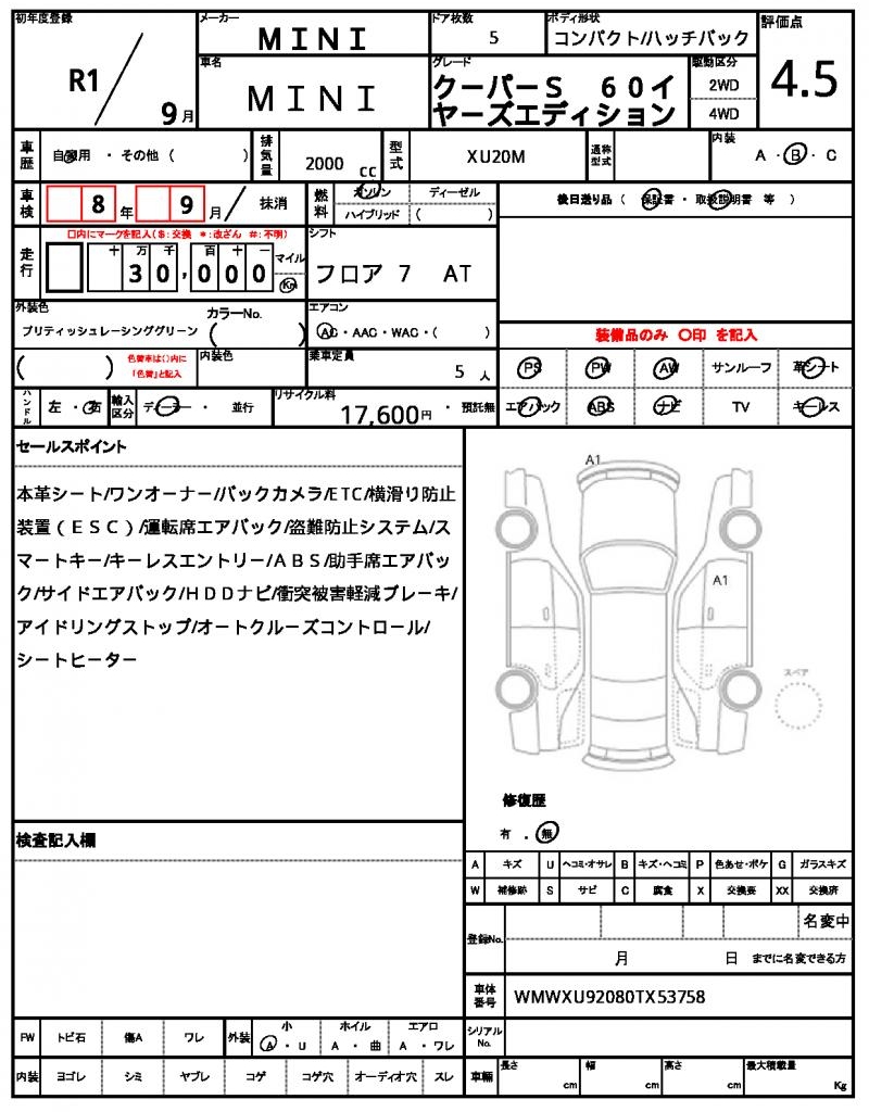 | VIN/Serial No. | WMWXU92080TX53758 |
