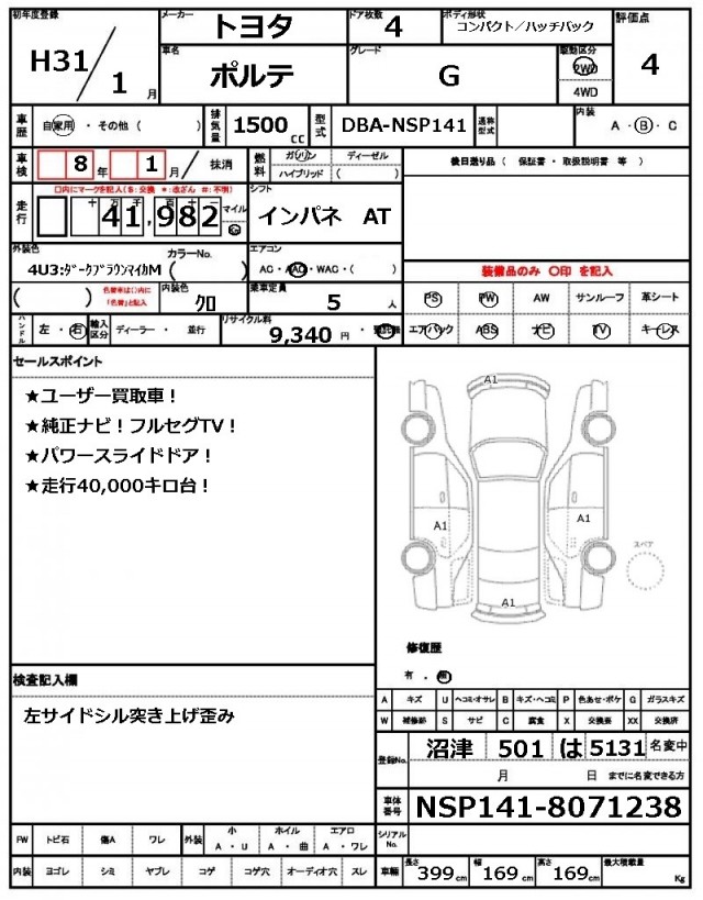 | VIN/Serial No. | NSP141-8071238 |