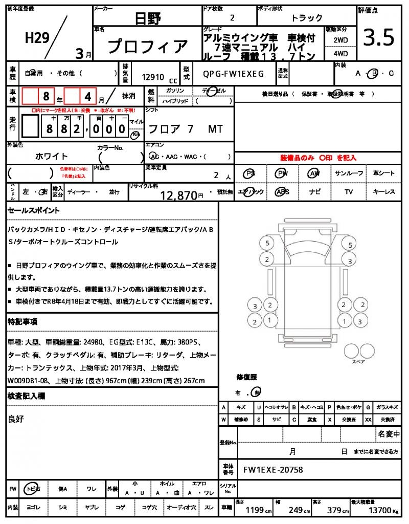 | VIN/Serial No. | FW1EXE-20758 |