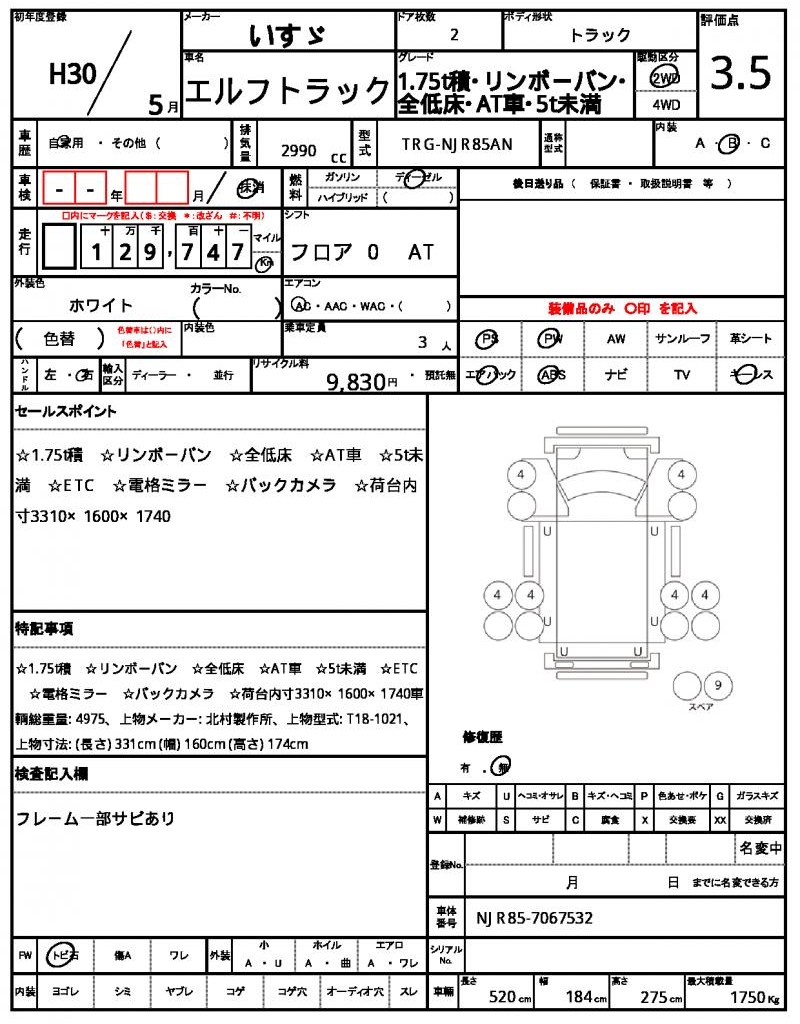 | VIN/Serial No. | NJR85-7067532 |