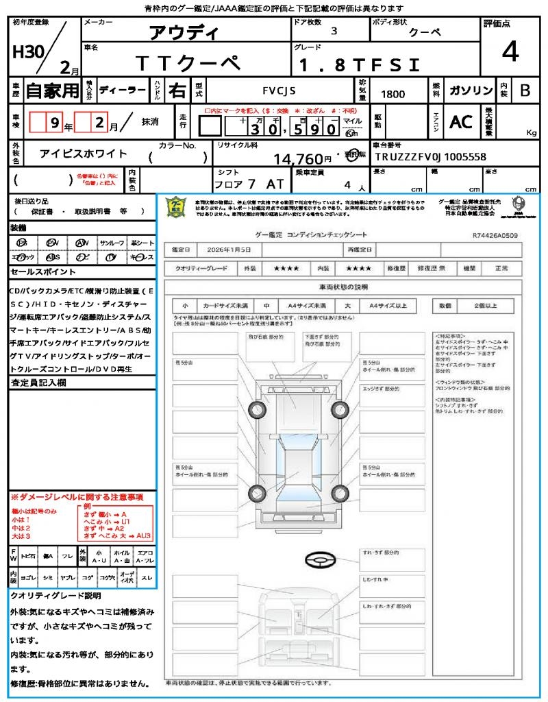 | VIN/Serial No. | TRUZZZFV0J1005558 |