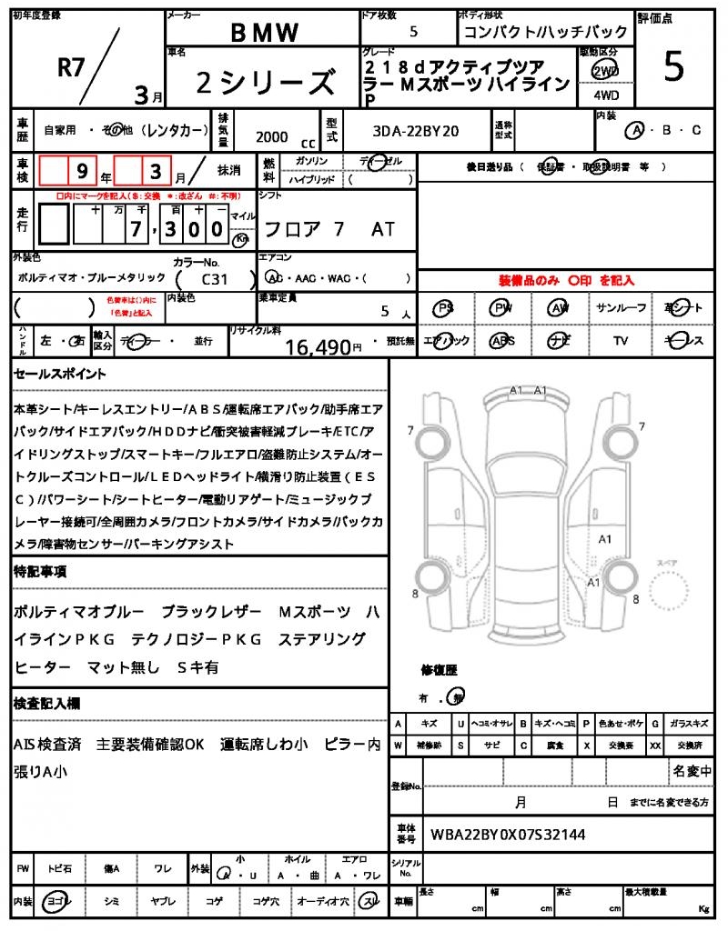 | VIN/Serial No. | WBA22BY0X07S32144 |