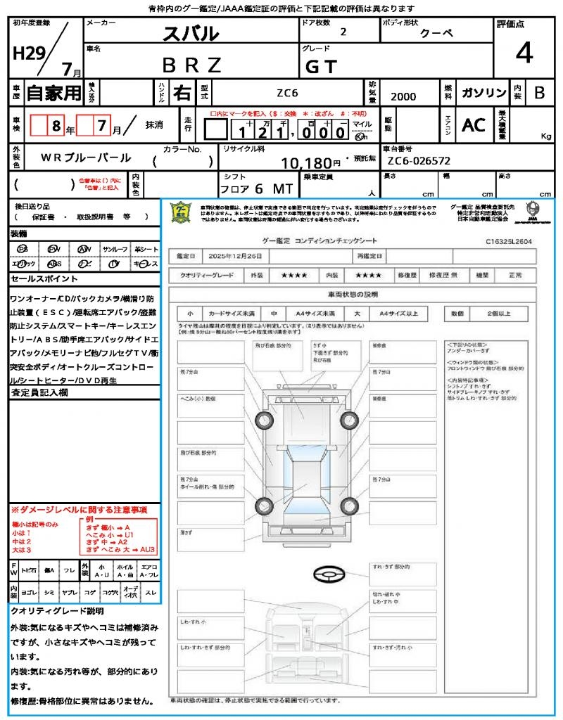 | VIN/Serial No. | ZC6-026572 |