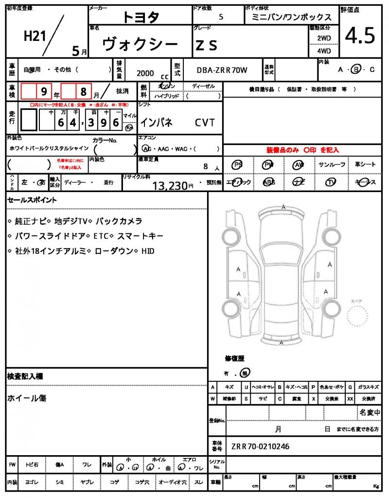 | VIN/Serial No. | ZRR70-0210246 |