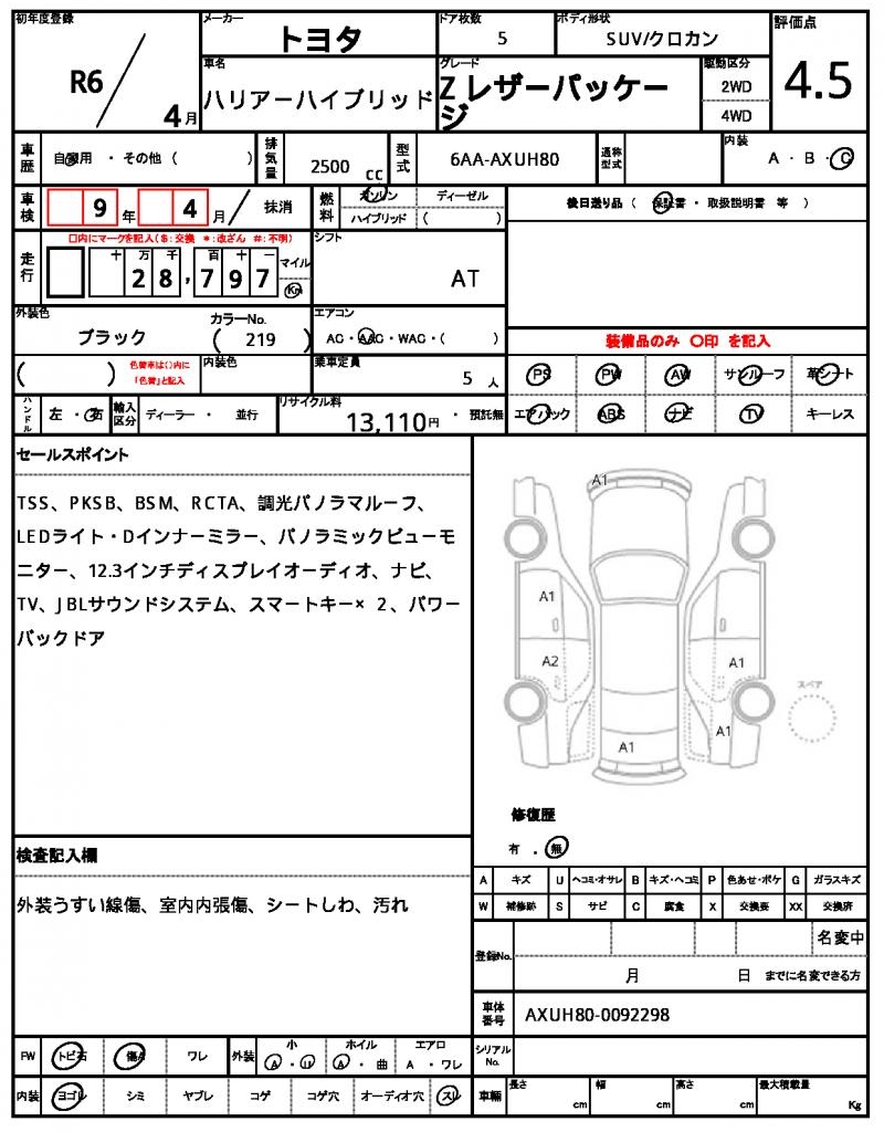 | VIN/Serial No. | AXUH80-0092298 |