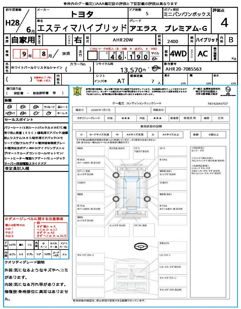 | VIN/Serial No. | AHR20-7085563 |
