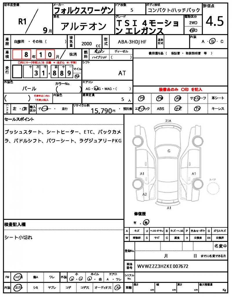 | VIN/Serial No. | WVWZZZ3HZKE007672 |