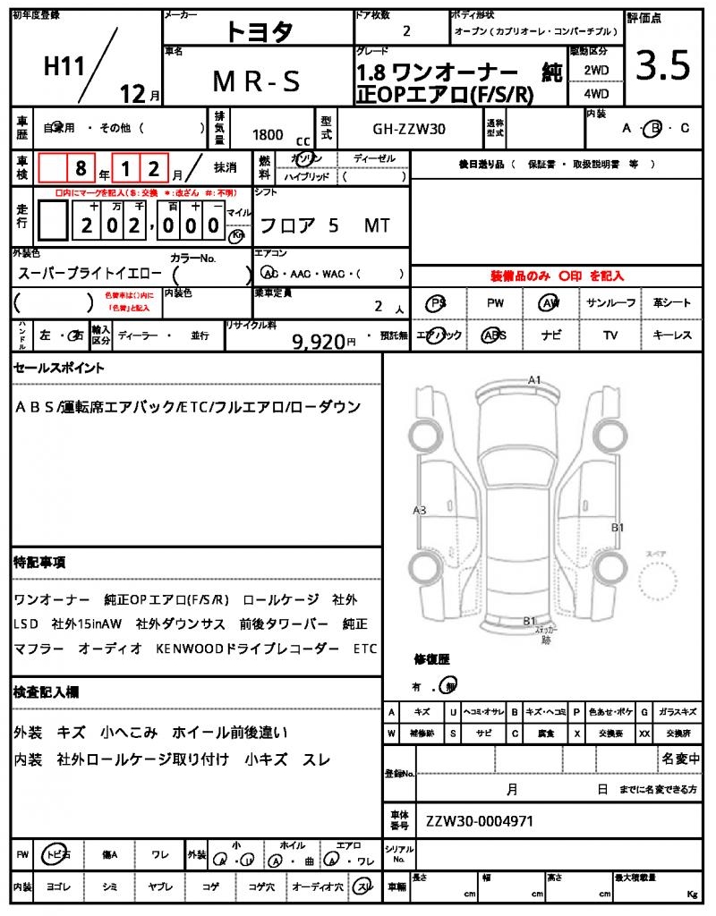 VIN/Serial No. ZZW30-0004971