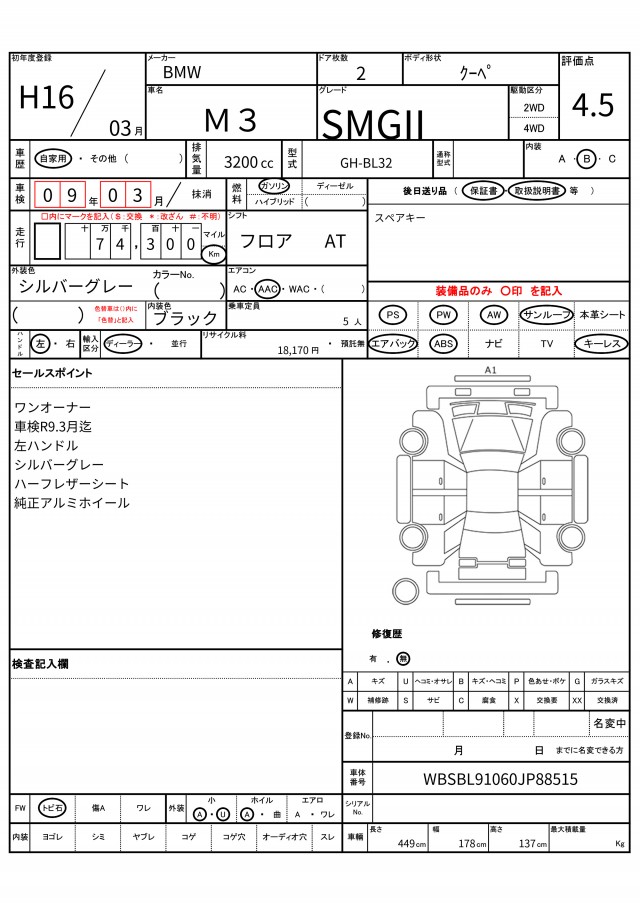 | Odometer | 74300km |