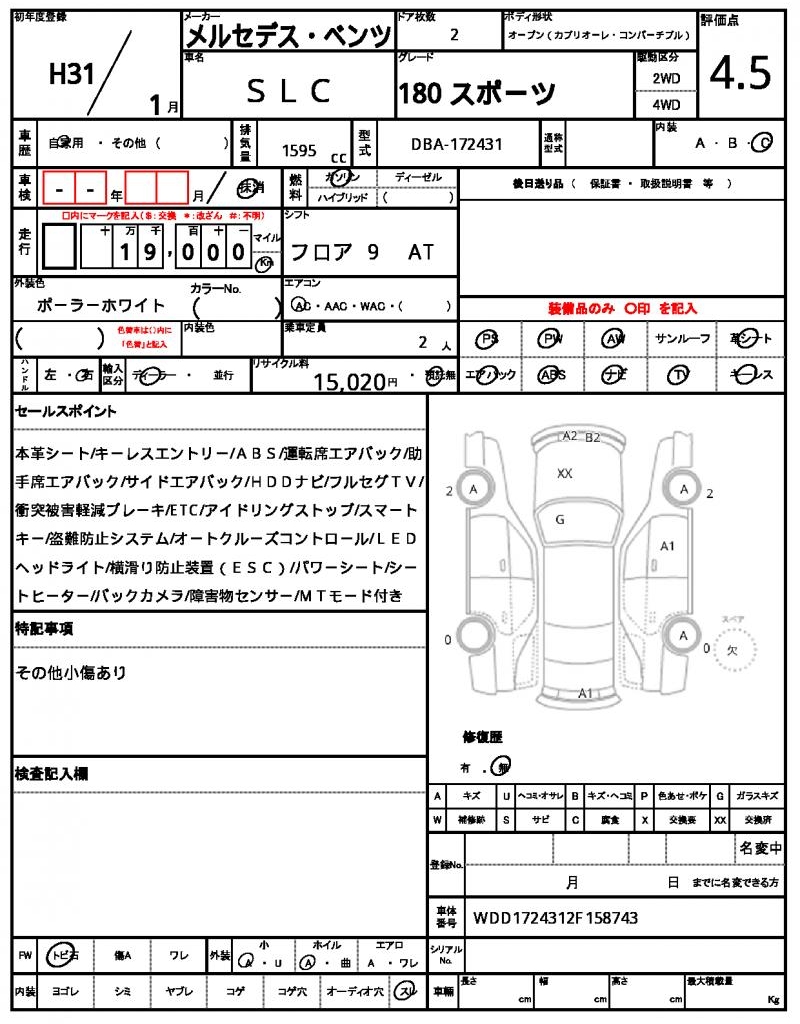 2019 MERCEDES BENZ SLC