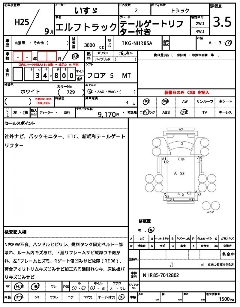| VIN/Serial No. | NHR85-7012802 |