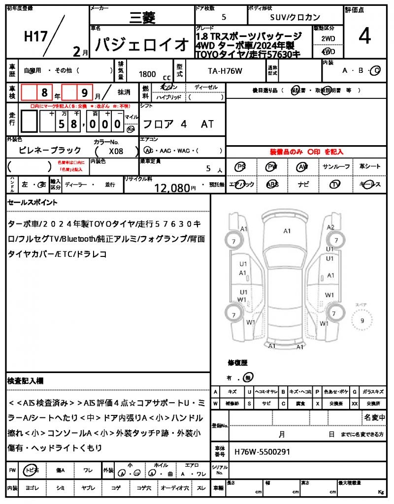 | VIN/Serial No. | H76W-5500291 |