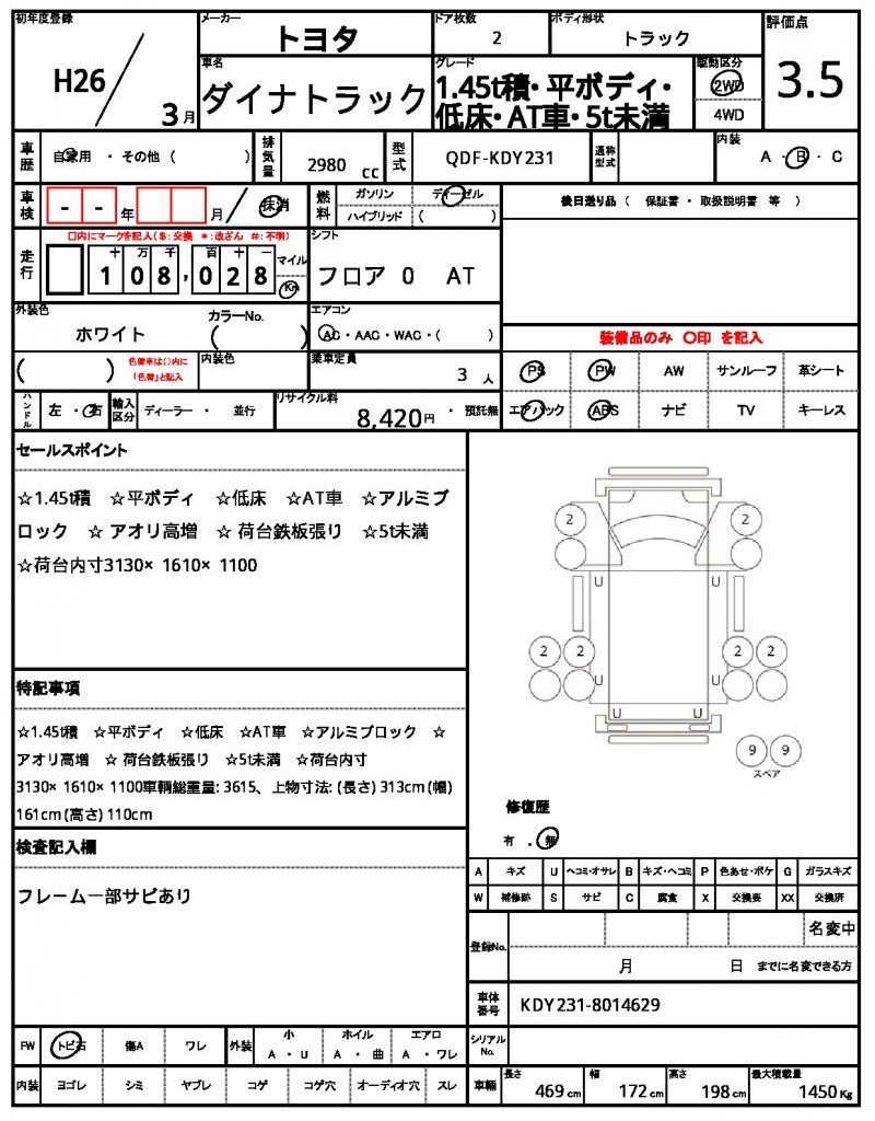 | VIN/Serial No. | KDY231-8014629 |