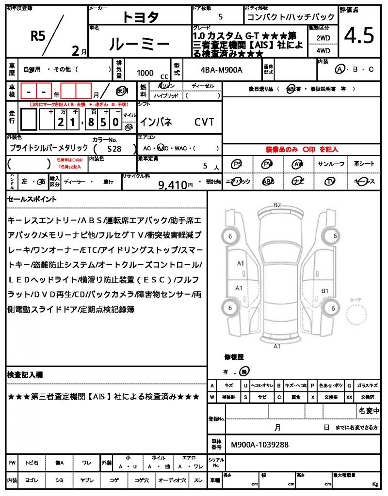 | VIN/Serial No. | M900A-1039288 |
