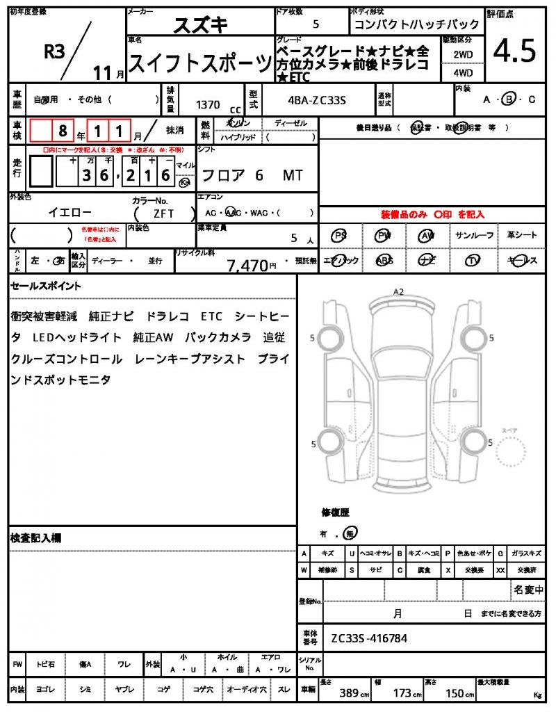 | VIN/Serial No. | ZC33S-416784 |