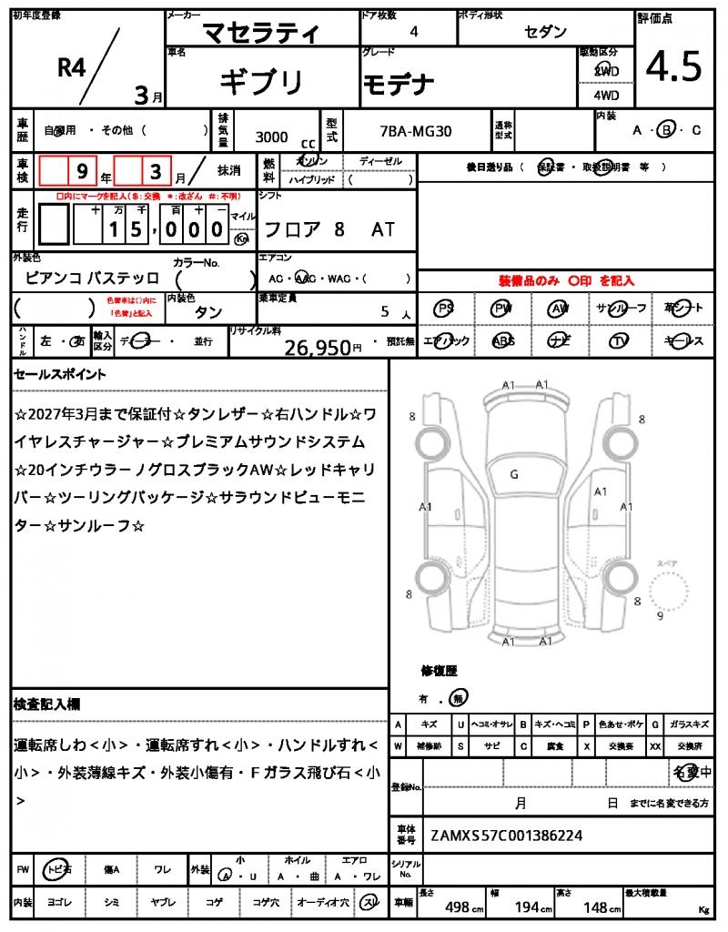 | VIN/Serial No. | ZAMXS57C001386224 |